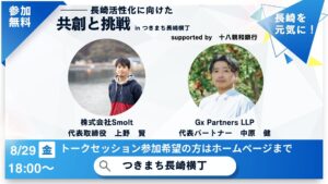 8月29日(金)18:00からつきまち長崎横丁特設会場にて、ベンチャーキャピタルや事業家を招いてトークセッションを開催します。