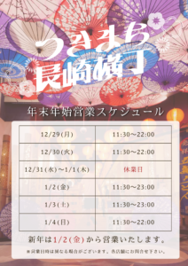 ご理解の程よろしくお願いします。※12月30日(月)は特別営業日となります。