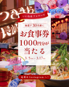 抽選で30名様に1,000円分のお食事券 が当たる